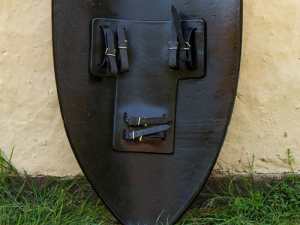 Ce grand bouclier de GN avec une simple croix blanche mesure 90×60 cm pour un poids de 1 kilo 582.