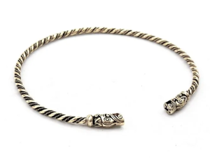 Plage de prix : 50,00€ à 55,00€Torque (collier ouvert) dont la souplesse permet aisément de l’écarter et de le resserrer. Inspiré d’un bracelet viking trouvé sur l’île de Gotland (Suède). Source historique : cliquez ici. Modèle unisexe,…