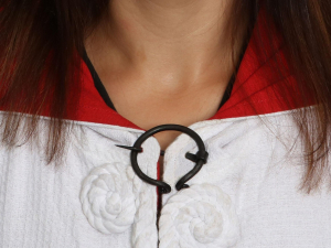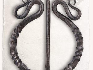 Une fibule robuste en fer forgé, parfaite pour attacher une cape très épaisse, une peau de bête sur les épaule… Deux tailles : grande (diamètre 8cm) ou petite (diamètre 6,50cm)
