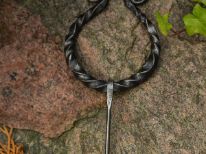Fibule en fer forgé, parfaite pour attacher une cape épaisse, par exemple. Deux tailles : grande (diamètre 10cm) ou petite (diamètre 8cm)