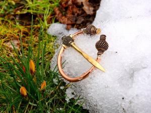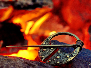 Reproduction d’une fibule viking du Xème siècle, à têtes de chardon. Dimensions : 6,5cm de diamètre, aiguille de 9cm Bijoux en bronze, ou bronze plaqué argent (au choix)