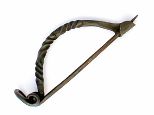 Fibule à ressort, en fer forgé. Réplique d’un modèle celtique, période de La Tène. Dimensions : 10cm x 3,5cm.