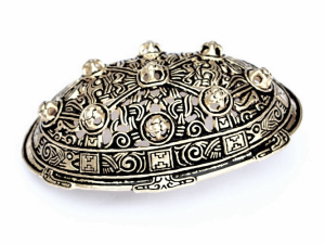 Splendide réplique d’une broche viking en forme de boîte, d’après un modèle historique suédois du Xème siècle. Les fibules en « boîte » se retrouvent durant l’époque viking presque exclusivement sur l’île…