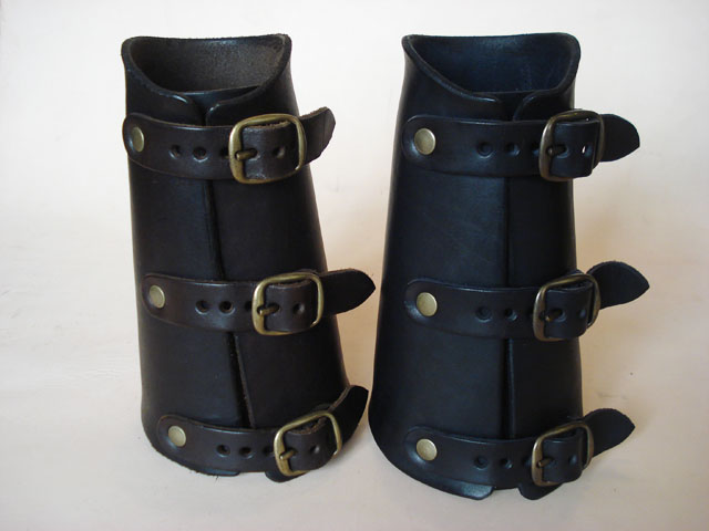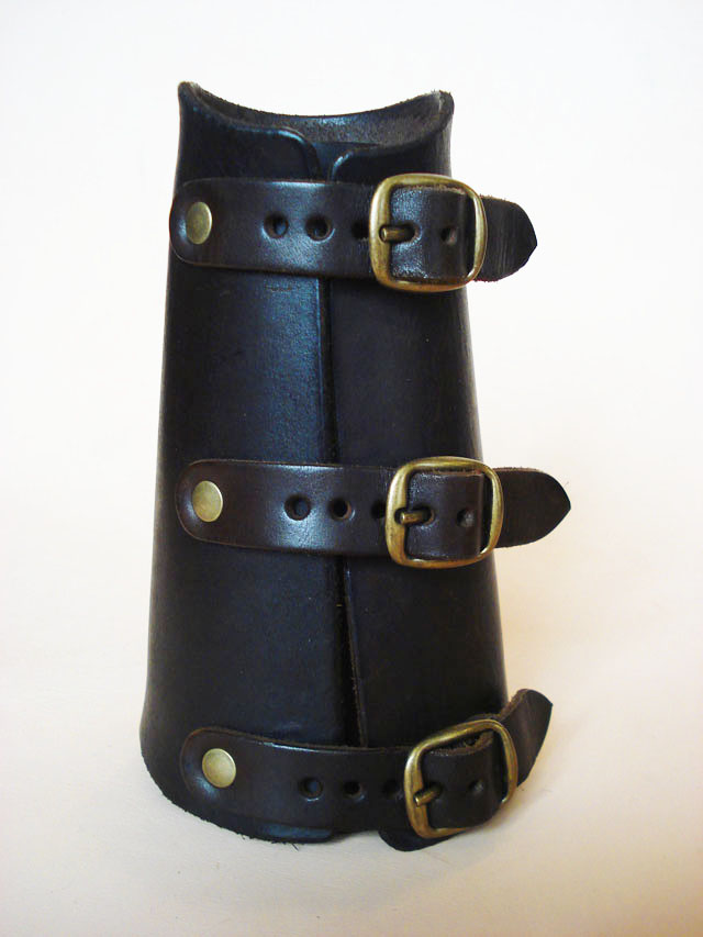 Barcelets en cuir d’excellente qualité, fermés par trois boucles (largeur règlable), forme ergonomique (arondis aux poignets).