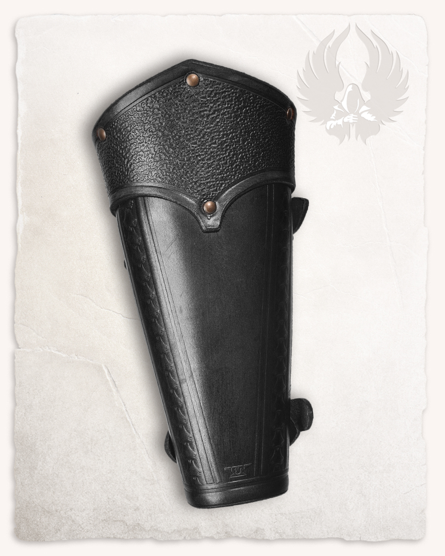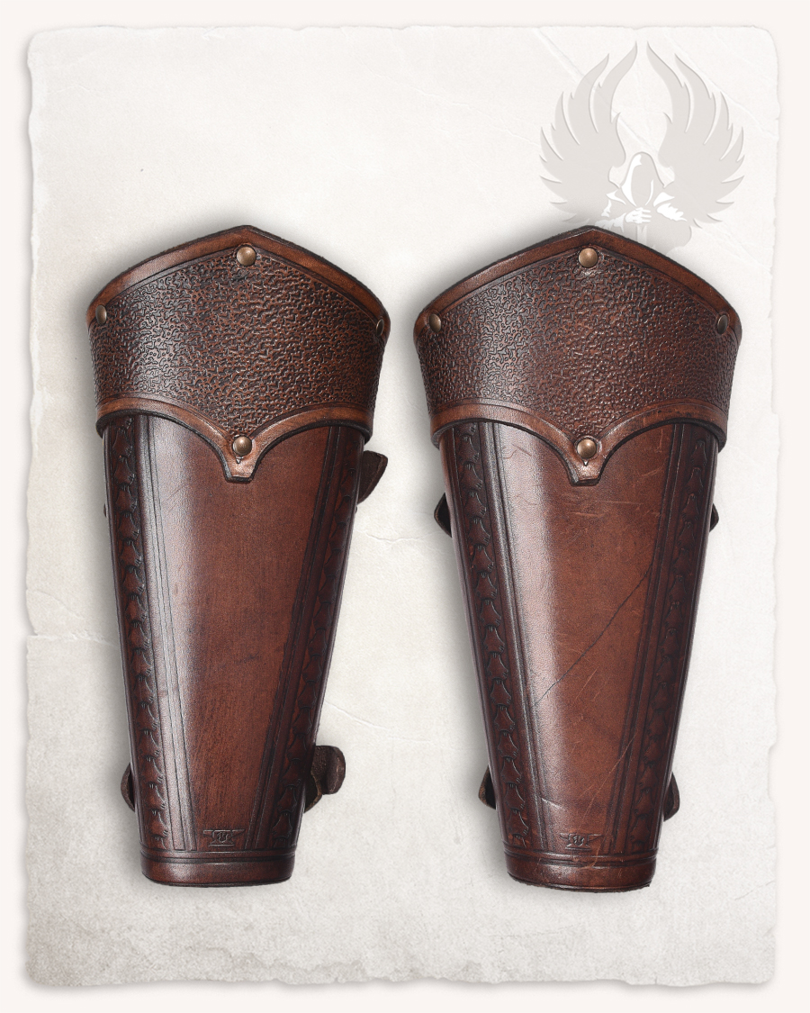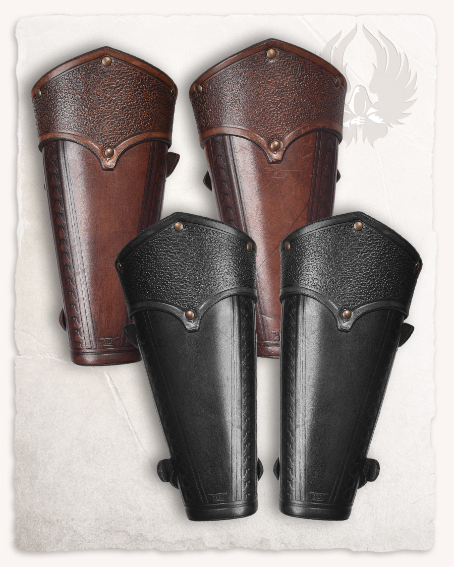 Bracelets en cuir couvrant l’avant-bras. S’attache par deux sangles à boucles.