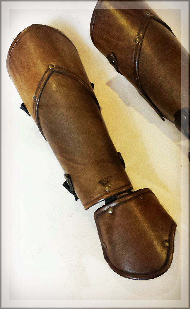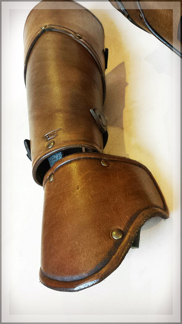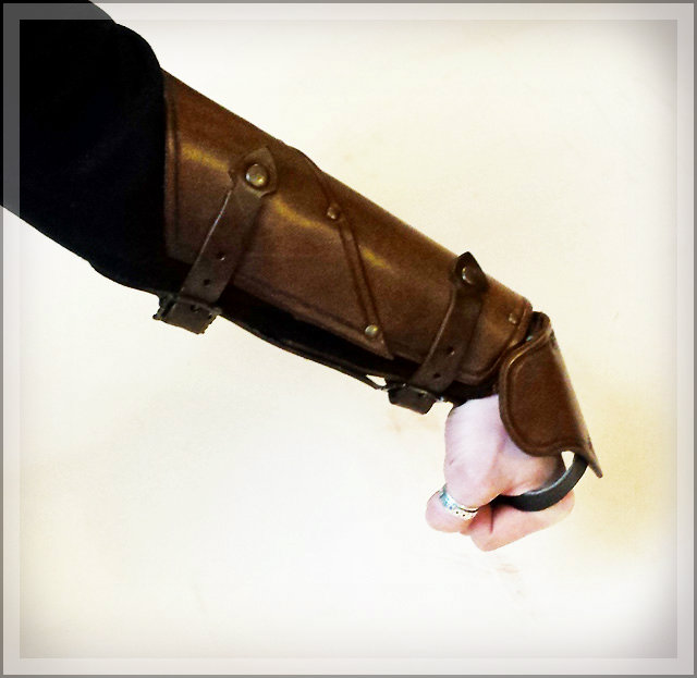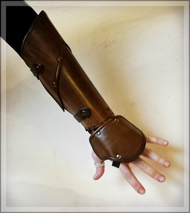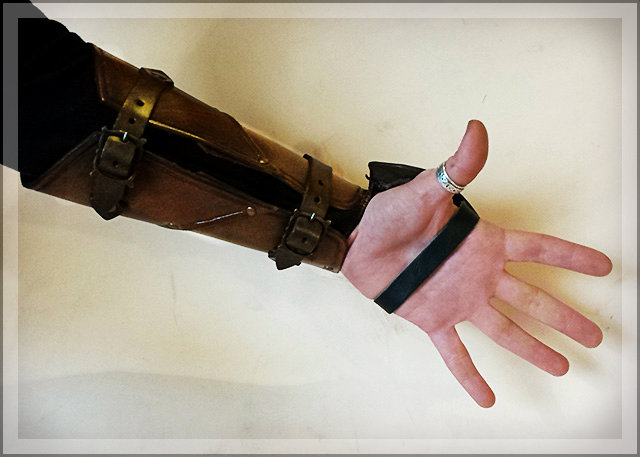 - Superbes brassards en cuir avec protection de main, une sangle sur la paume et deux sangles à boucles sur l’avant-bras.