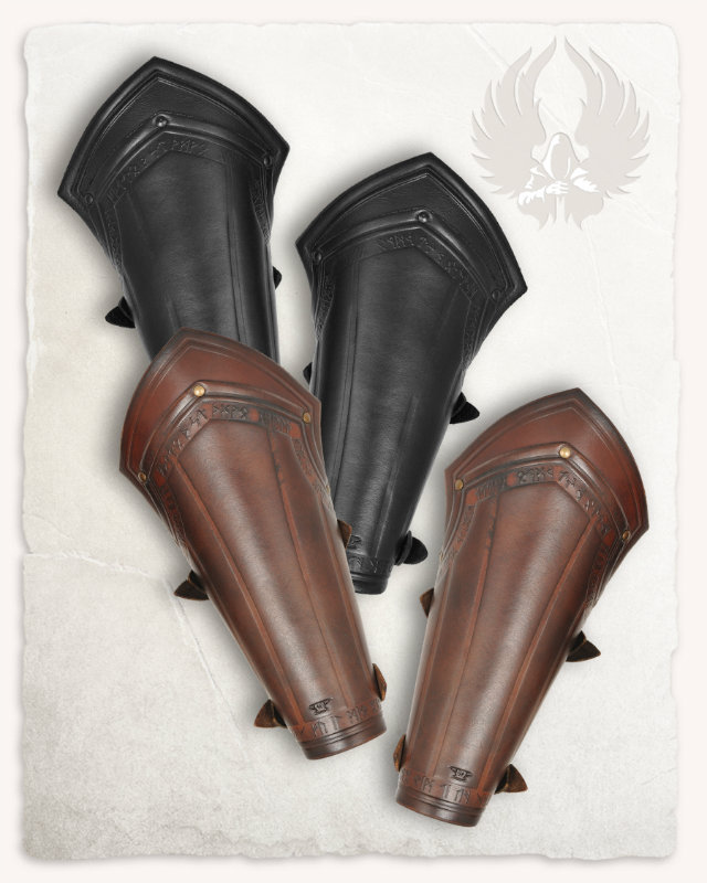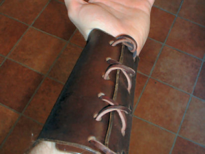- Bracelets en cuir couvrant l’avant-bras. S’attache par deux sangles à boucles