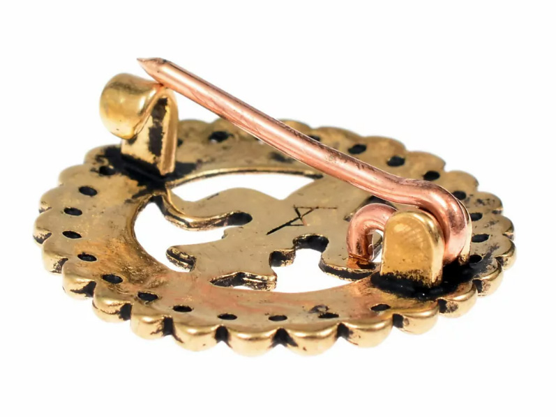 - Réplique d’une enseigne de pèlerinage du XVème siècle, actuellement dans la collection du Metropolitan Museum of Art. L’originale provient du lieu de pèlerinage anglais de Walsingham , où se trouvait le sanctuaire le plus important d’Angleterre dédié à la Vierge Marie.