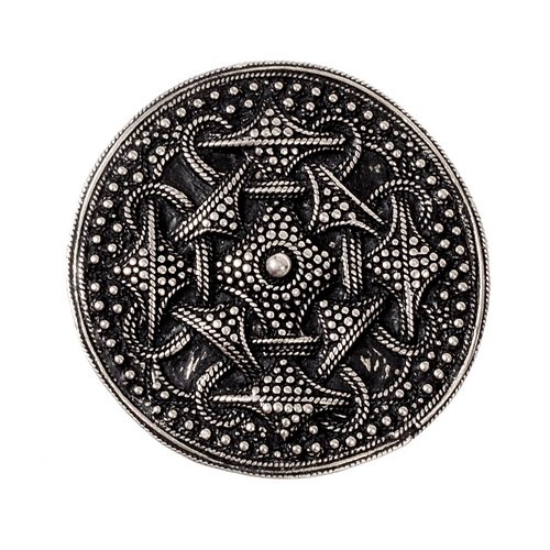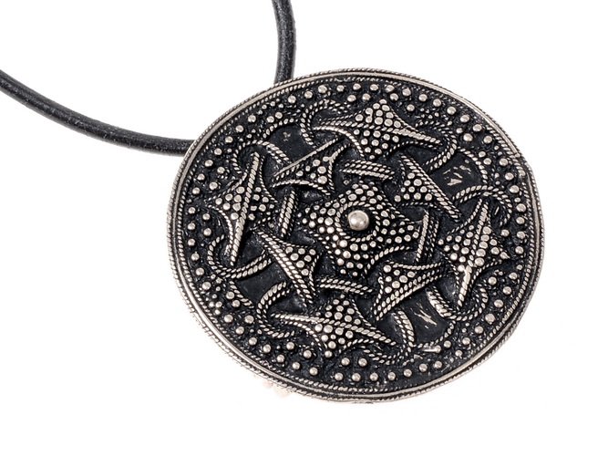 - Réplique d’une broche viking en forme de disque granulaire d’après un modèle découvert dans village de Filborna (sud de la Suède), daté des IX-Xème siècles.