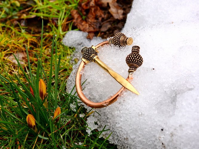 - Reproduction d’une fibule viking du Xème siècle, à têtes de chardon.