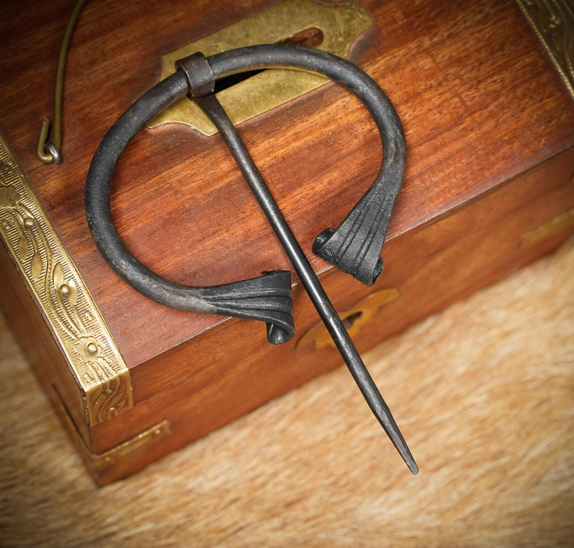 - Une fibule en fer forgé, robuste, parfaite pour attacher une cape.